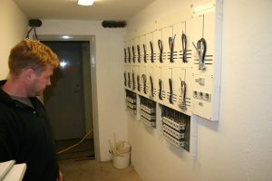 Montering nya skyltar när FB Oil tog över bensinförsäljningen vid Saxbergs Bil & Gummi AB.